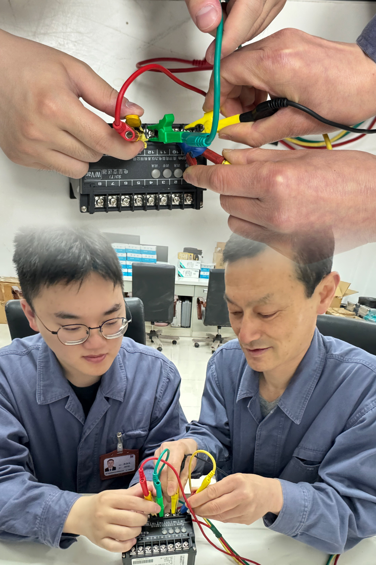 在鎮電,像他們這樣的師徒還有很多。“三航”技能提升行動、“導師帶徒”活動是鎮電在教育培訓上的一大傳統。每年,年輕的員工都會與自己的師傅們結對“修煉”,師傅親手傳遞接力棒,徒弟用雙手接續奮斗,“大手拉小手”讓技能和匠心薪火相傳。