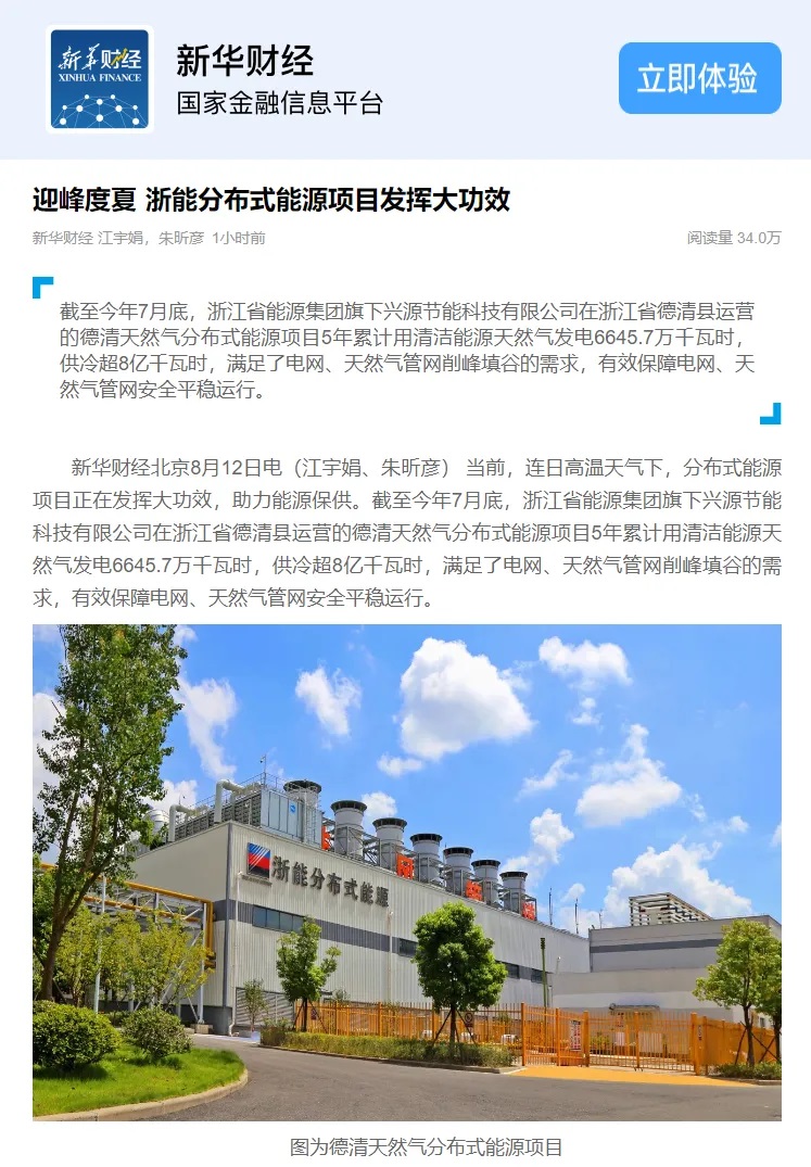 8月10日至12日,新華財經、潮新聞等媒體平臺相繼報道德清分布式能源項目助力迎峰度夏、能源保供。