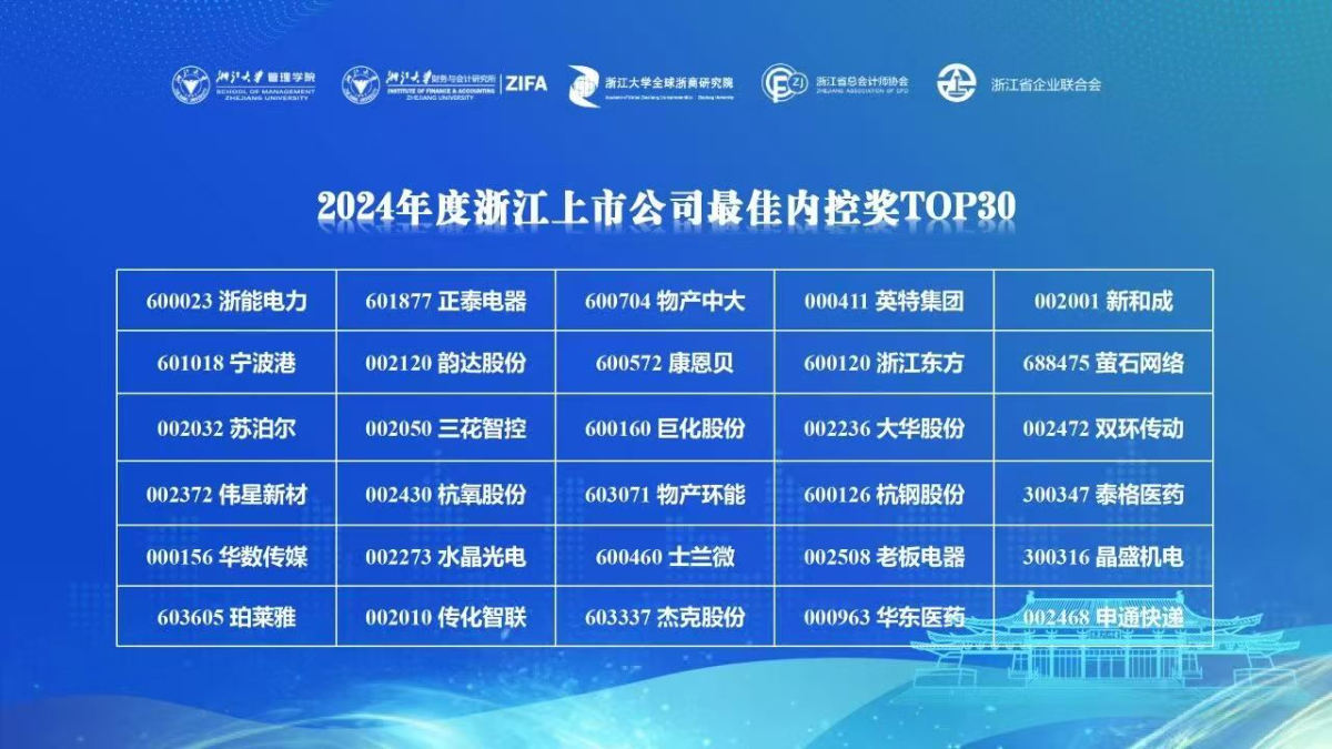 浙能電力榮膺2024年度浙江上市公司最佳內(nèi)控獎榜首