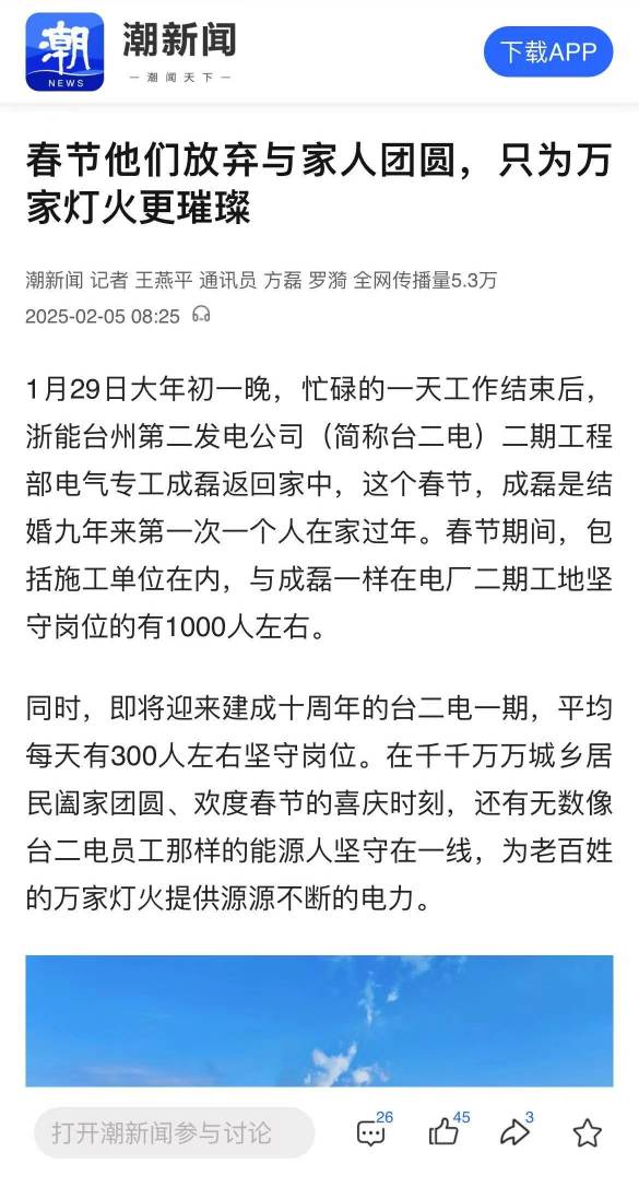 編者按:春節,是闔家團圓的日子,是歡聲笑語的時刻。然而,在這萬家燈火的背后,有一群浙能人,他們放棄了與家人團聚的溫馨,選擇堅守崗位,用責任和擔當守護著節日的溫暖與光明。2月5日,《錢江晚報》整版報道浙能臺二電春節期間上千人奮戰在工地一線。