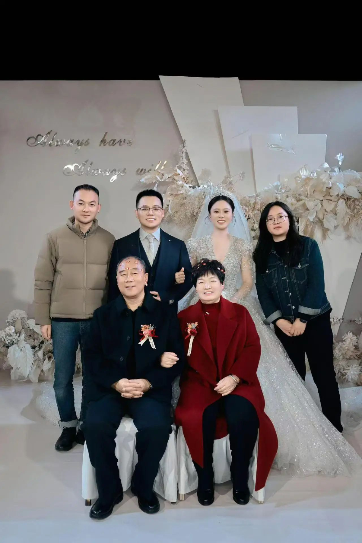 成磊(左一)一家合影。哥哥(左二)去年11月結婚,右一為成磊妻子。 臺二電 提供
