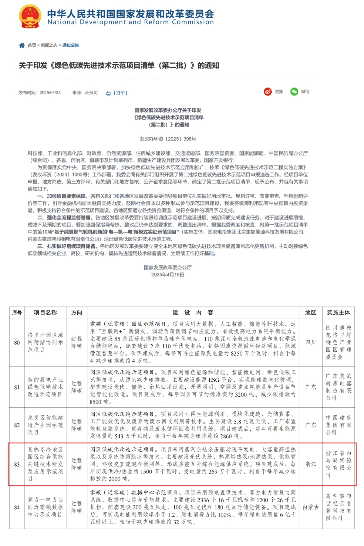 白馬湖實驗室項目入選國家第二批綠色低碳先進技術示范項目