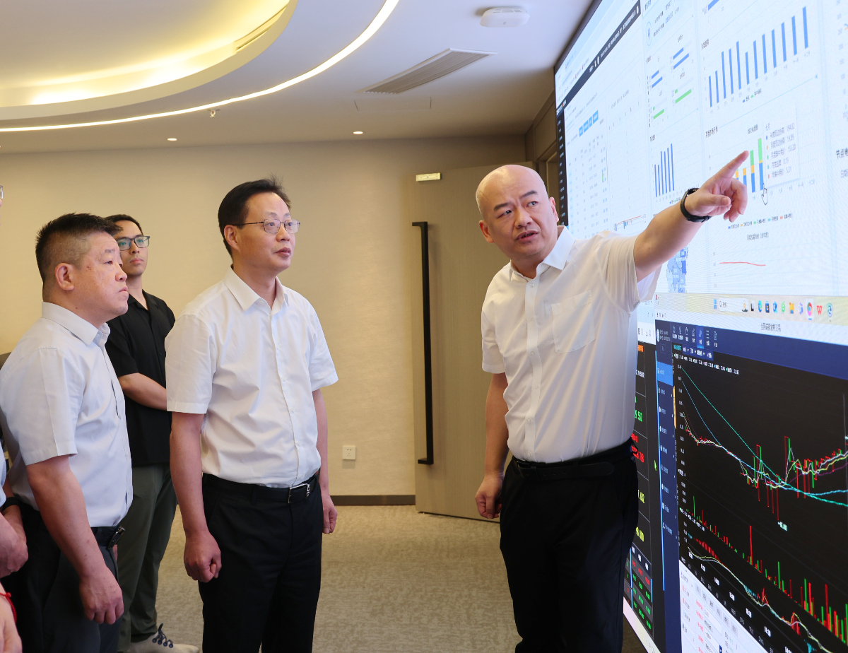 劉盛輝一行到浙能能服電力交易大廳了解情況。 陳都 攝
