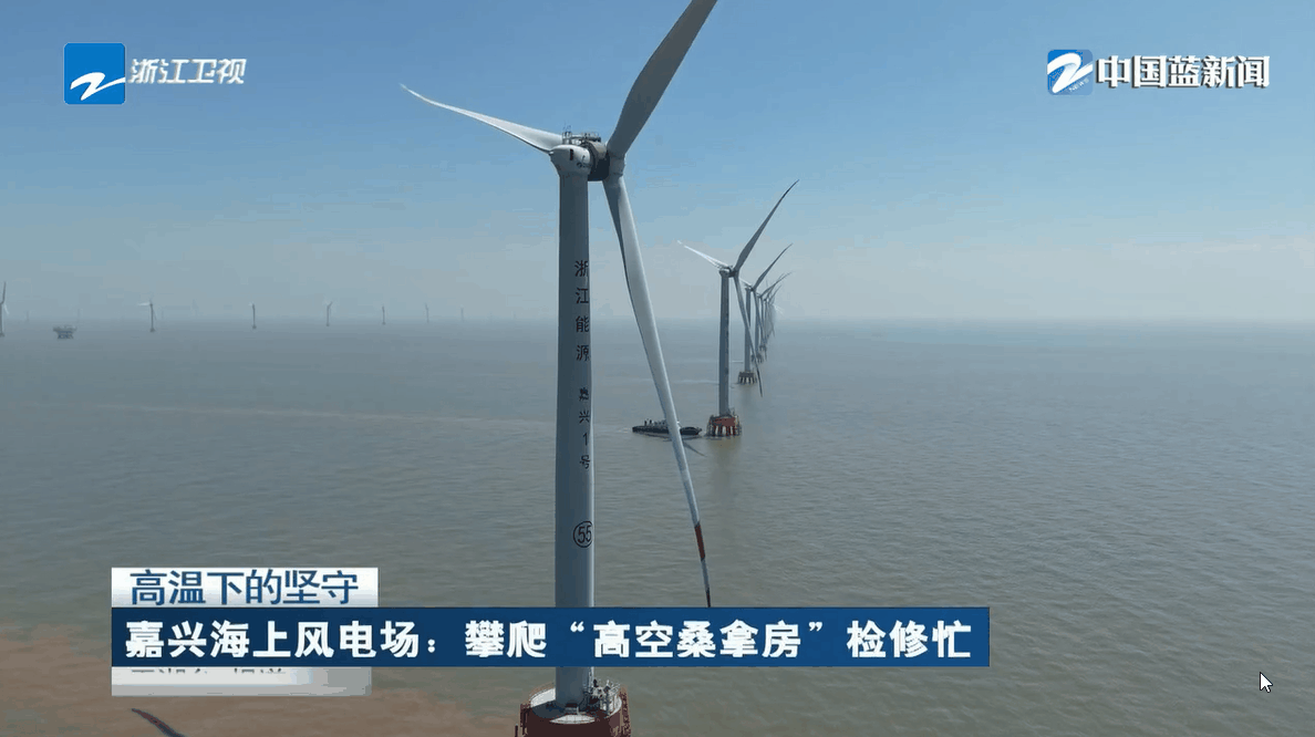 9月8日,浙江衛視《浙江新聞聯播》報道,在連日晴熱天氣與全省用電高位運行的情況下,浙能嘉興1號海上風電場風機維護人員高溫下搶抓窗口期,在“海上高空桑拿房”內忙于維護檢修,用汗水守護綠色電能的脈搏,以實干奮斗踐行能源高質量發展戰略。