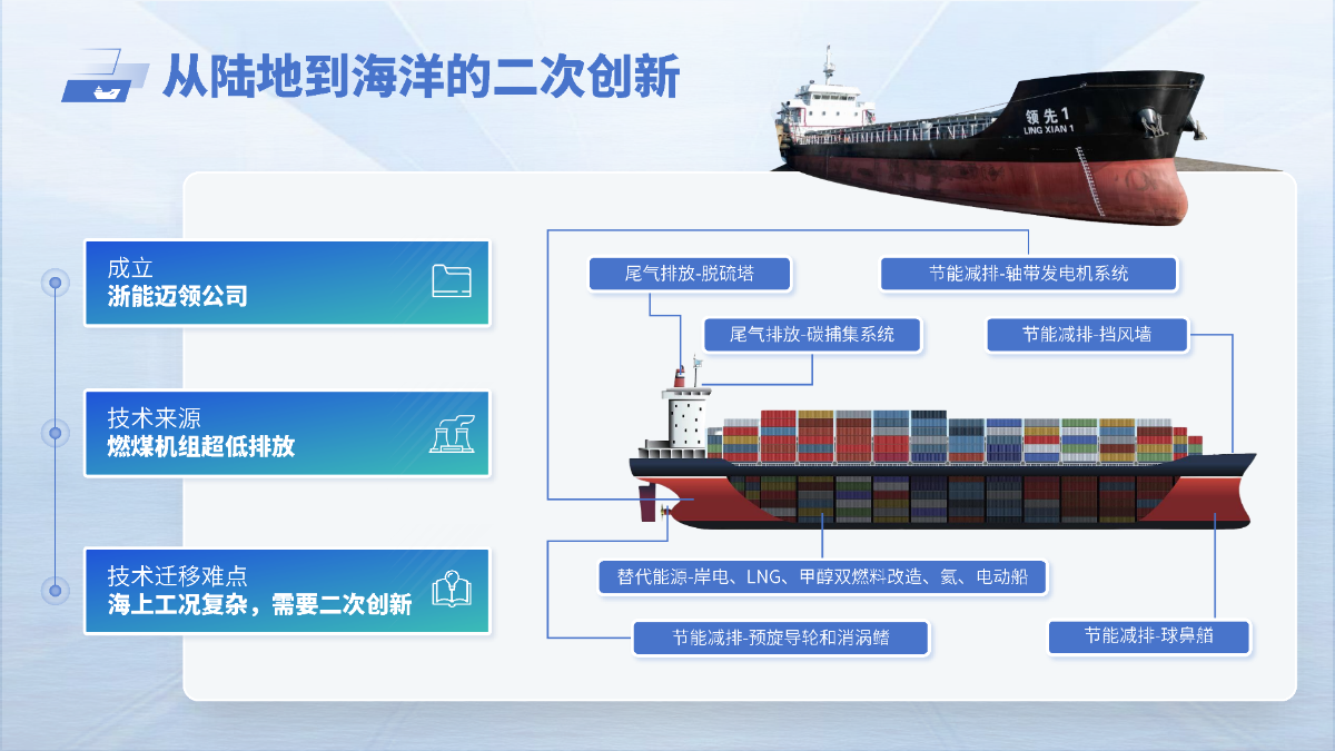 浙能邁領(lǐng)作為浙能集團(tuán)綠色航運(yùn)業(yè)務(wù)的重要平臺,依托浙能集團(tuán)國家技術(shù)發(fā)明獎一等獎超低排放技術(shù)及相關(guān)基礎(chǔ)研究,持續(xù)推動船舶環(huán)保技術(shù)的創(chuàng)新與工程轉(zhuǎn)化。面向國際海事組織“限硫令”帶來的行業(yè)需求,公司逐步創(chuàng)新迭代船舶脫硫技術(shù):攻克形成了海水鎂基二氧化硫吸收強(qiáng)化技術(shù)、緊湊型高效洗滌塔等一批科研成果,研發(fā)出了全國首套混合式船舶脫硫系統(tǒng),并獲得全球九大船級社的運(yùn)行認(rèn)證。