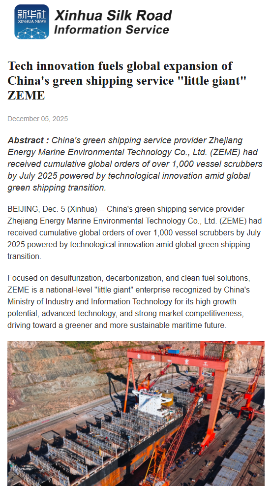12月5日,新華絲路英文網(Xinhua Silk Road)報道浙能集團綠色航運業務發展。 新華絲路英文網(Xinhua Silk Road) 圖