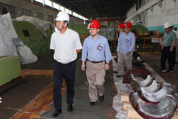 柯吉欣總經(jīng)理一行在鎮(zhèn)電5號(hào)機(jī)組大修現(xiàn)場(chǎng)檢查安全生產(chǎn)。 賀欣 攝