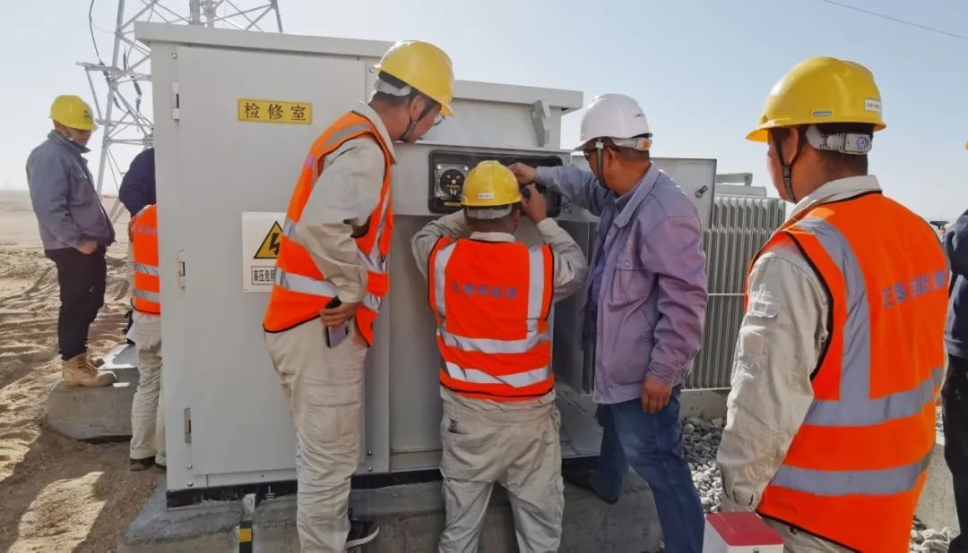 浙能海西華匯大柴旦風電項目首臺風機并網前,職工們對送出線路進行合閘