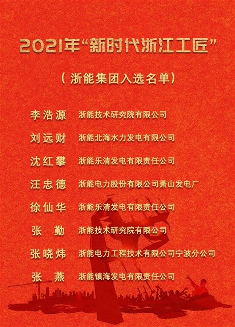 浙能集團所屬紹興濱海熱電公司被授予2021年全國五一勞動獎狀,浙能所屬企業的8名員工獲2021年“新時代浙江工匠”榮譽稱號。