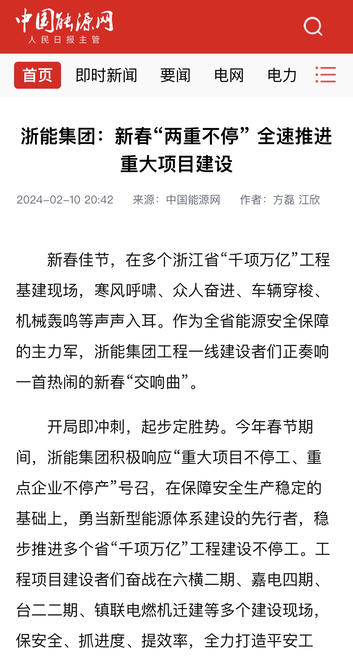 中國能源網(wǎng)報道《浙能集團(tuán)推進(jìn)“千項萬億”工程建設(shè)不停工》。 中國能源網(wǎng) 圖
