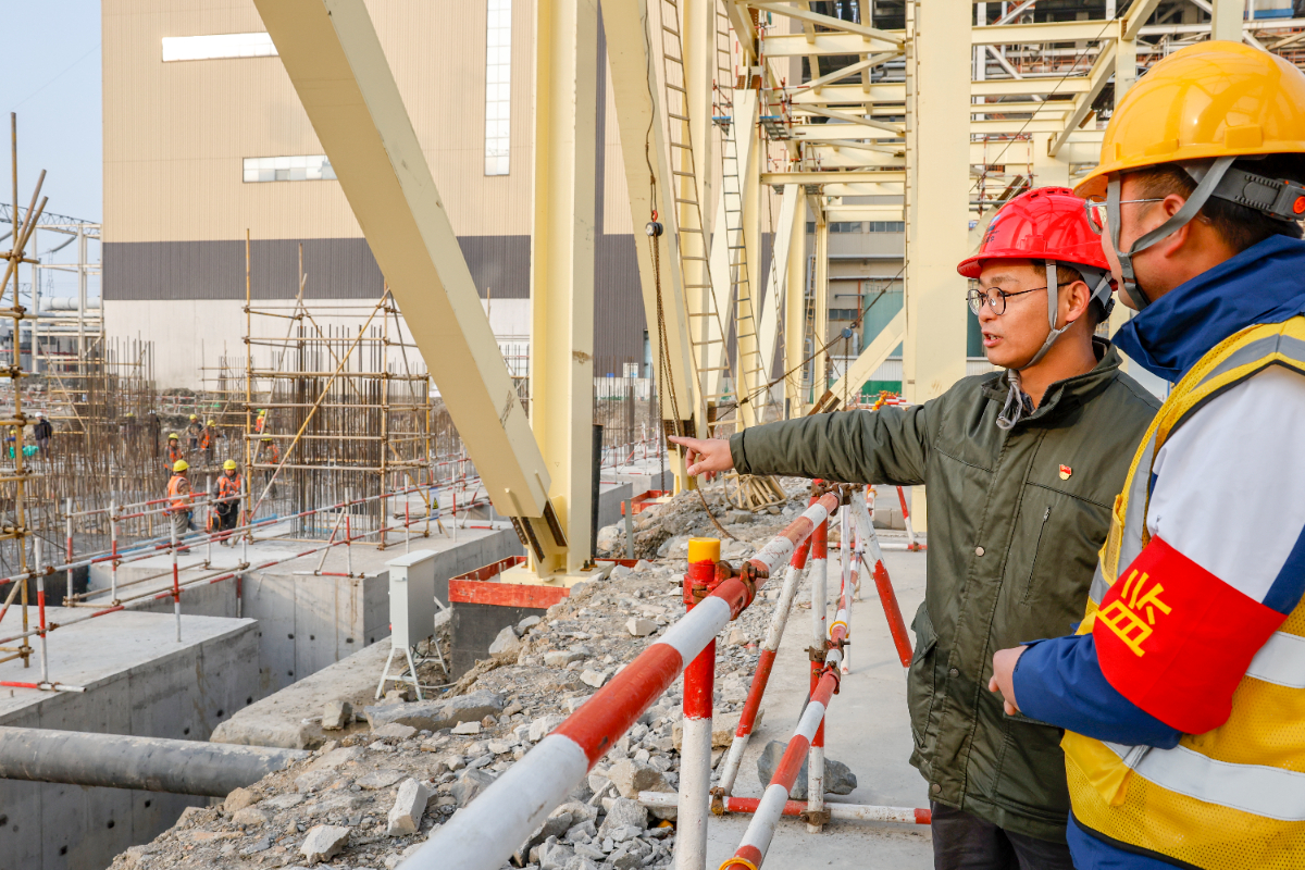 2月10日大年初一,在浙能嘉電四期擴建項目工地上,建設(shè)單位、監(jiān)理等各方人員仍按照排值班計劃準(zhǔn)時到崗到位,多臺塔吊和吊機配合,將施工材料精準(zhǔn)放置工地各處,隨處可見工人忙碌的身影。“春節(jié)前天氣情況不好,雨水較多,不利于現(xiàn)場施工,趁著現(xiàn)在天氣晴好,大家分秒必爭,節(jié)假日期間每天有300多人駐守作業(yè),工程部、質(zhì)安部‘1+4’模式全天候、多專業(yè)協(xié)同管理,確保各個作業(yè)區(qū)井然有序。”據(jù)嘉電四期工程部主任方亮介紹,自9號機組鍋爐房首根鋼結(jié)構(gòu)吊裝就位以來,工程施工現(xiàn)場全體建設(shè)人員保持高漲的工作激情,機組建設(shè)按節(jié)點計劃推進(jìn),鍋爐房首層鋼結(jié)構(gòu)吊裝進(jìn)展達(dá)預(yù)期,出線門架樁基、循環(huán)水虹吸井及管道、主廠房基礎(chǔ)、電除塵基礎(chǔ)等同步施工。